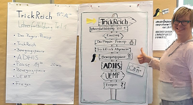 Zusätzliche Tipps und Tricks zu den Themen Material, Hilfsmittel, Korrekturen, Aufbewahrung und Flipchart-Techniken für Fortgeschrittene rundeten die beiden Tage ab.