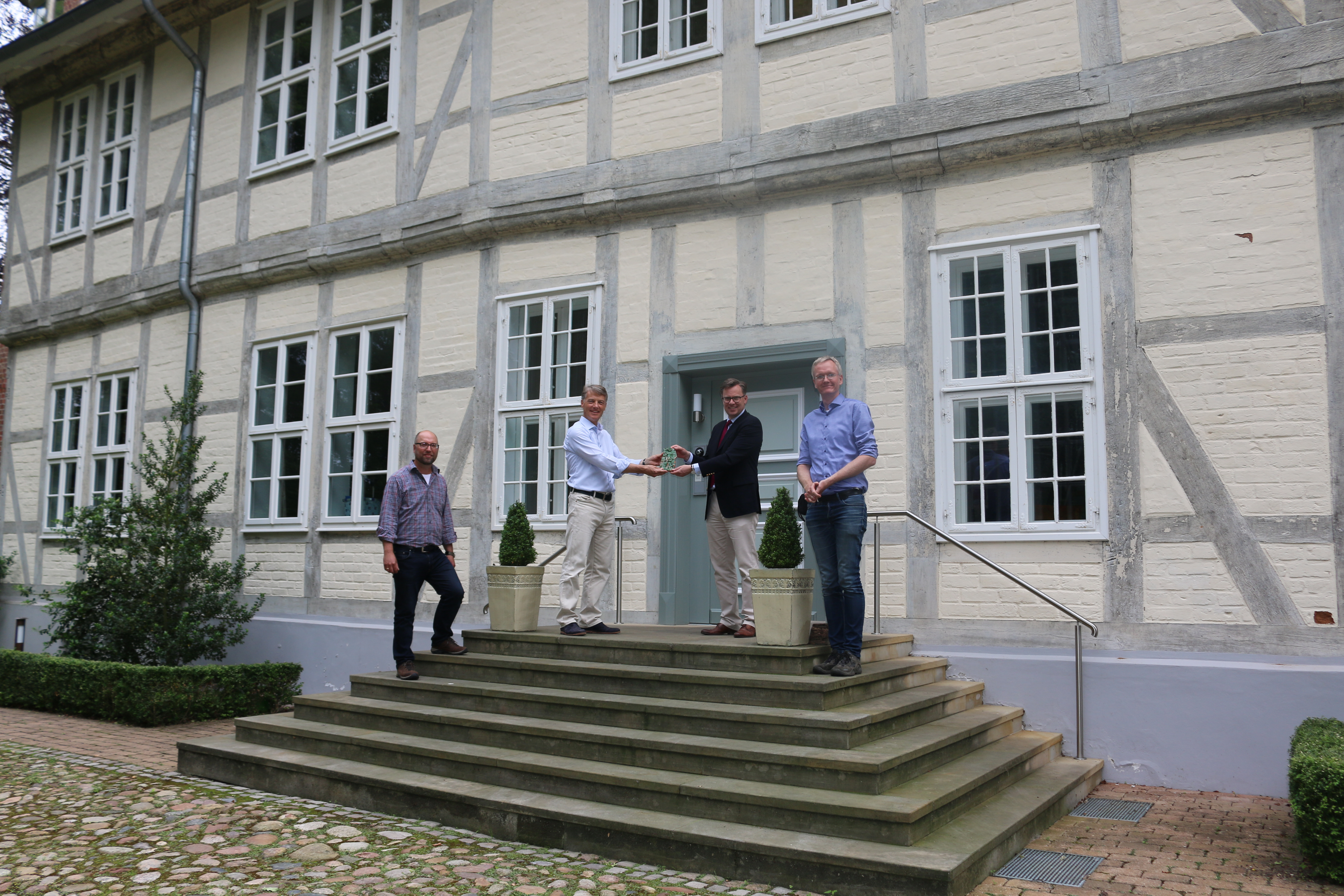 Jetzt überreichte Dr. Andreas Ebel gemeinsam mit Dr. Ingo Eichfeld, dem Kreisarchäologen des Landkreises Gifhorn, und Dr. Florian Westphal, Museumsleiter der Burg Brome, ein ehemaliges Fundstück an den Inhaber. „Es ist erstaunlich, welche Funde ans Tageslicht kommen, wenn im Landkreis Gifhorn gebaut wird. Unser Kreisarchäologe leistet wertvolle Arbeit, um zu verstehen, was sich früher hier im Landkreis abgespielt hat. Es ist mir eine Freude, ein Stück Geschichte, das im Landkreis Gifhorn gefunden wurde, an seinen heutigen Besitzer zurückzugeben“, erklärte Landrat Dr. Andreas Ebel.